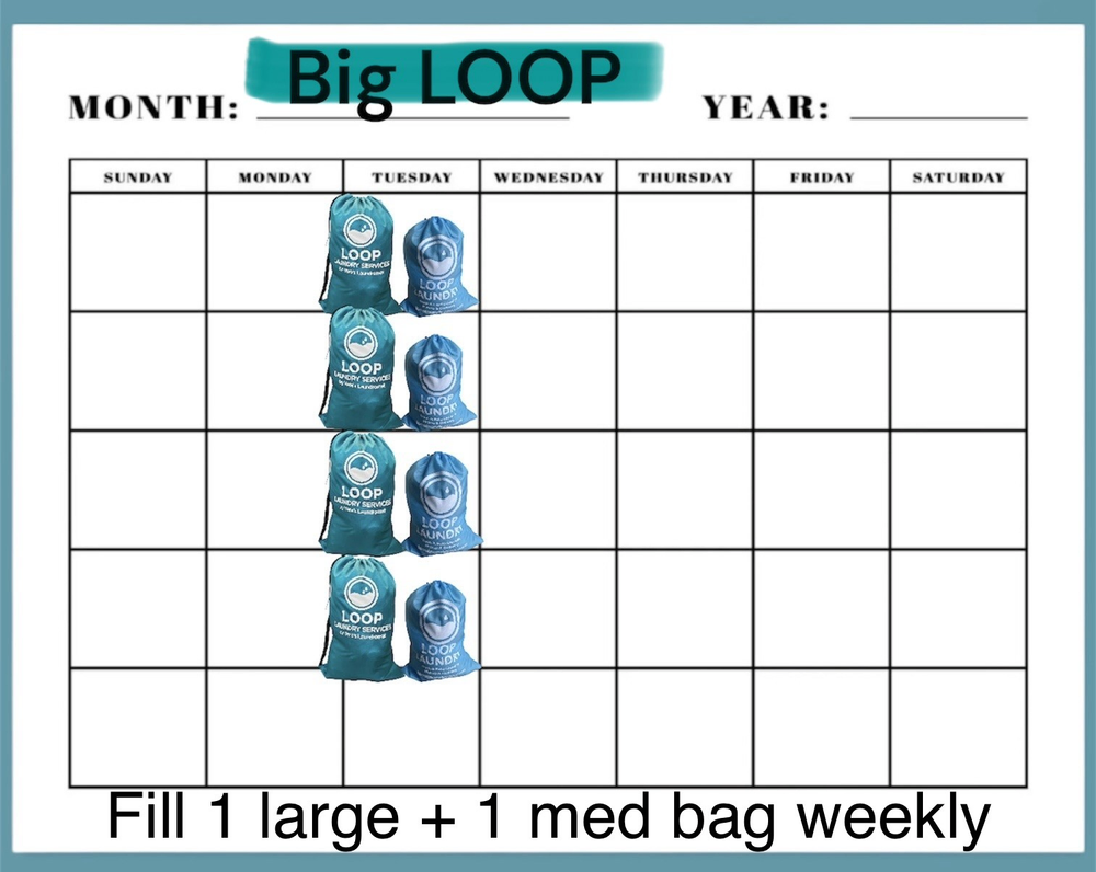 A durable, branded LOOP Laundry Bag will be delivered to you with your first completed order.