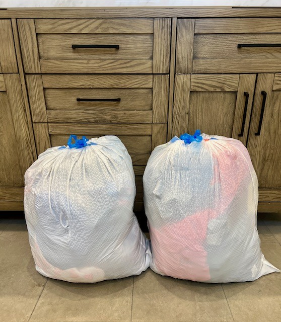 please use TWO 13-gallon kitchen bags with your name written on the bags.
