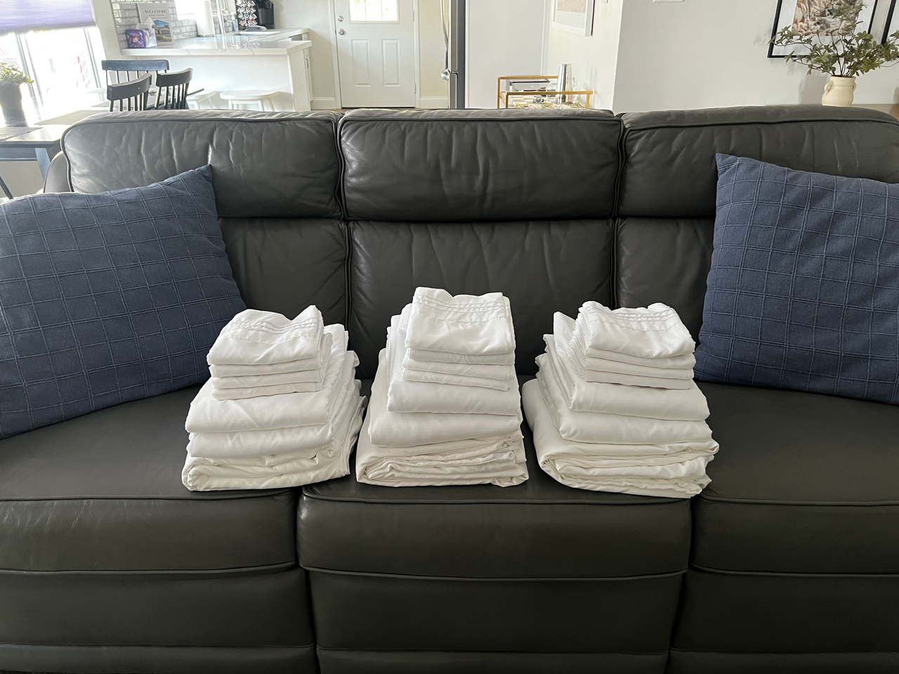 As STR Owner/Operators ourself, we understand the unique pain points laundry and linen quality control can be. That’s why we’ve built a laundry service designed specifically for short-term rentals that will streamline turnovers, ensure consistent quality, and take the burden of linens off your cleaners so they can focus on what they do best. Our professional laundry attendants inspect each item and treat stains before washing, your linens will be return organized, sanitized, and ready for the next guest. No more paying cleaners to stand around waiting for dryers, no more guessing whether the sheets are guest-ready, and no more surprise stains making it back onto a bed.